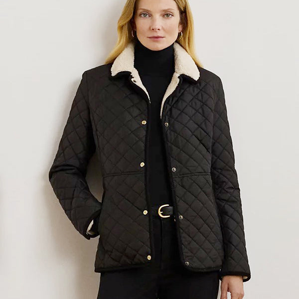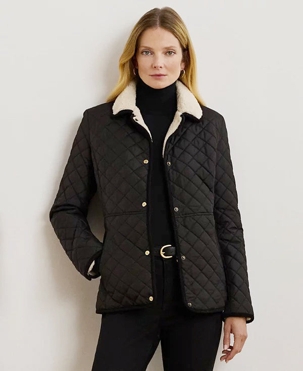 랄프로렌의 클래식한 디자인에 포근해보이는 인조 양털 카라로 포인트를 준 퀼팅 자켓이예요~