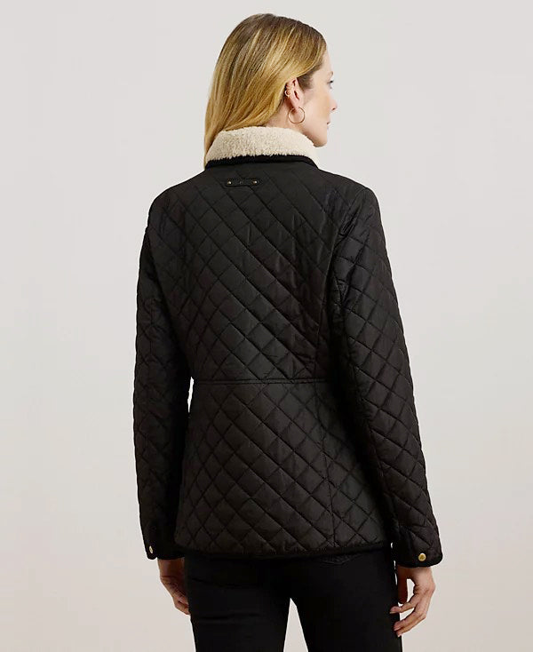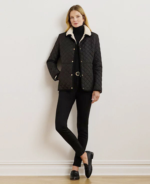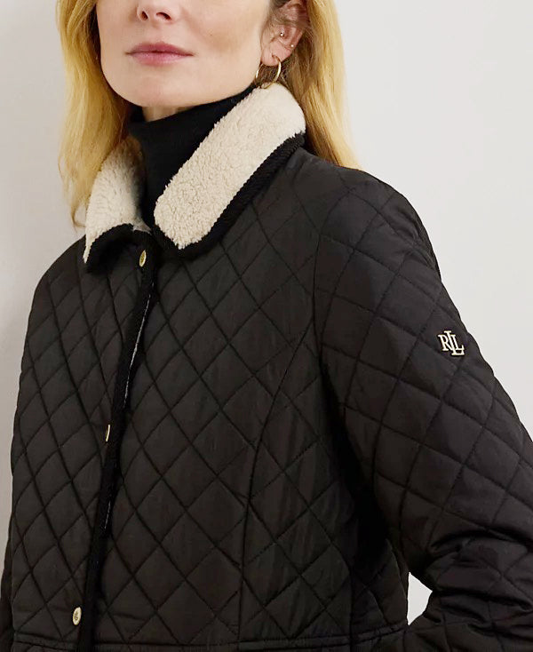 로렌 랄프로렌 블랙 인조 양털 카라 하이웨이스트 퀼팅 누빔 경량 패딩 자켓