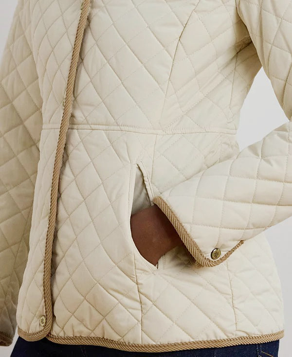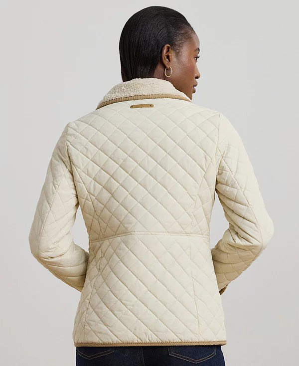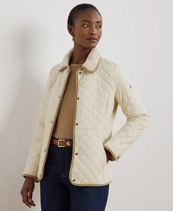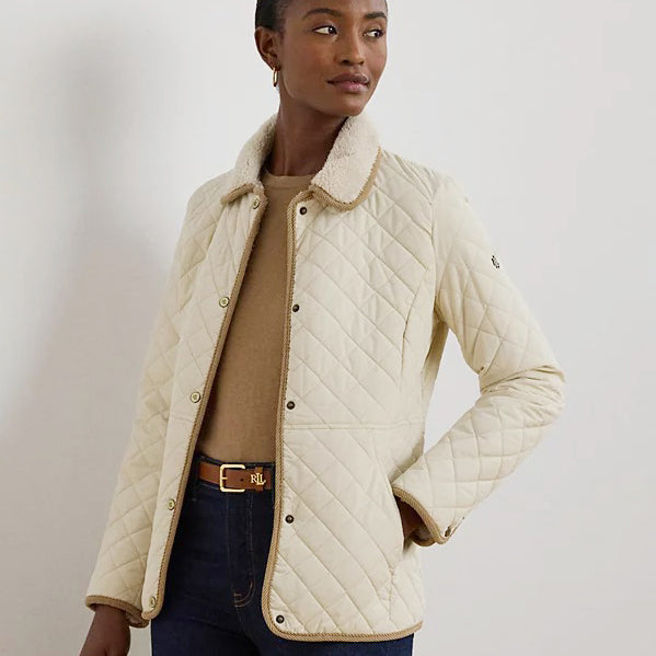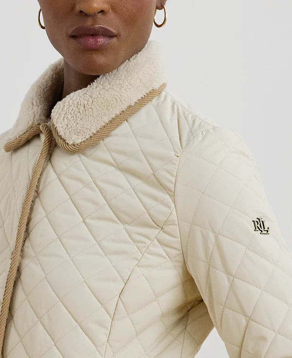 로렌 랄프로렌 크림 인조 양털 카라 하이웨이스트 퀼팅 누빔 경량 패딩 자켓