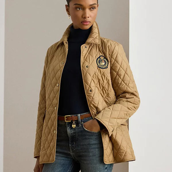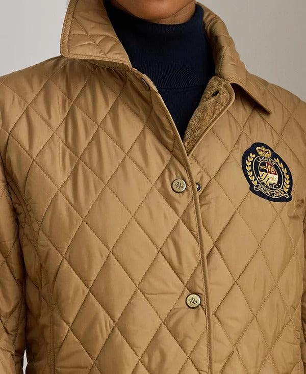 로렌 랄프로렌 카멜 베이지 크레스트 로고 와팬 패치 퀼팅 누빔 경량 패딩 자켓