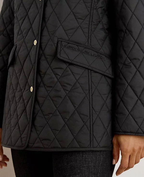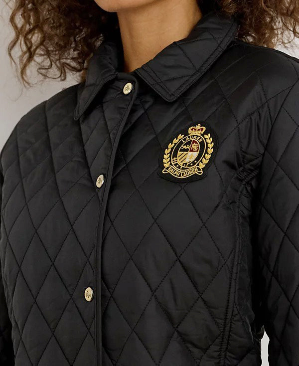 로렌 랄프로렌 블랙 크레스트 로고 와팬 패치 퀼팅 누빔 경량 패딩 자켓